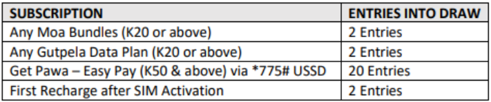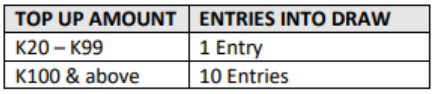 - There will be 20x Lucky Weekly Winners who stand a Chance of winning K1,000 each in Cash. K20,000 Total weekly Cash Prize;